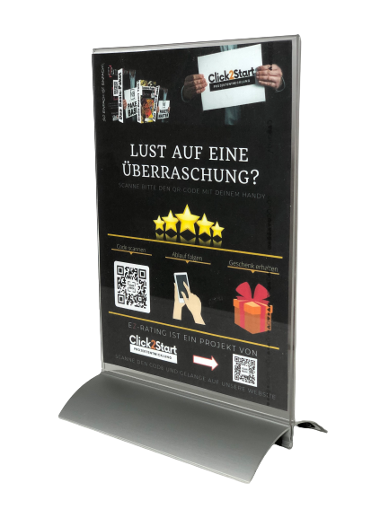 Starte jetzt durch und entdecke, wie einfach es ist, mit dem intelligenten Tischaufsteller Kunden zu gewinnen und Umsatz zu steigern!